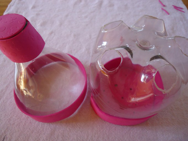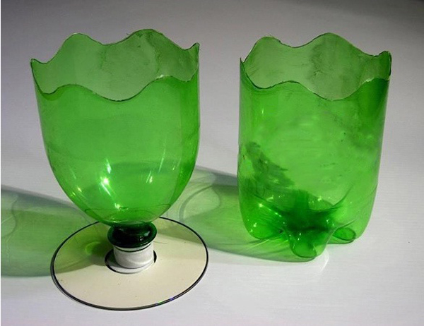 Comece separando todos os materiais que você vai utilizar em seu artesanato. Corte a parte superior da pet. Para finalizar a sua peça, basta aquecer a borda da garrafa pet cortada e modelar como quiser. E está pronto!
