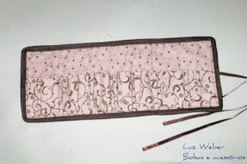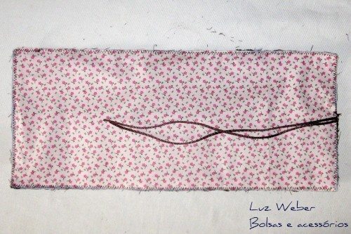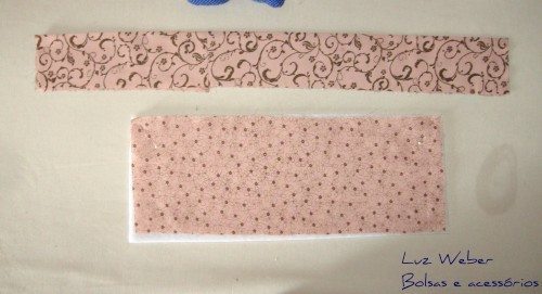 - 2 pedaços de tecidos em formato de retângulos de 13cm x 35 cm para o topo e forro.