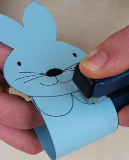 Logo após, grampeie esta emenda para formar sue porta-guardanapo. Porém o grande segredo neste momento é deixar o grampeador posicionado de forma que ele fique na vertical, para que quando você grampear duas vezes em cada patinha pareça que os grampos são as divisórias da patinha do coelho.
