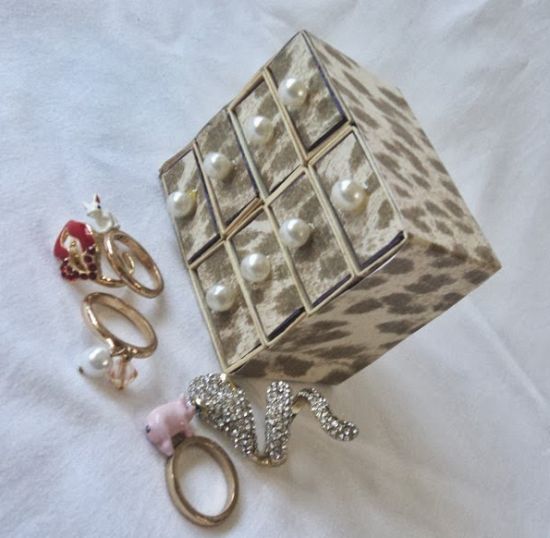 Você pode fazer um lindo e sofisticado porta-joias com caixinha de fósforo para guardar as suas peças menores, que normalmente sempre somem em meio às bijoux maiores e com muitos detalhes. E você também pode presentear com esta linda peça.