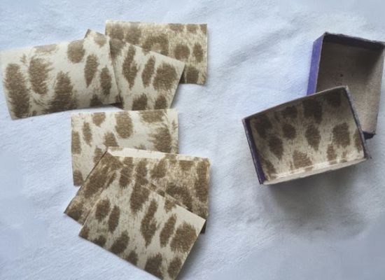Agora, corte e cole pedaços de papel dentro de cada parte de dentro da caixa de fósforos.