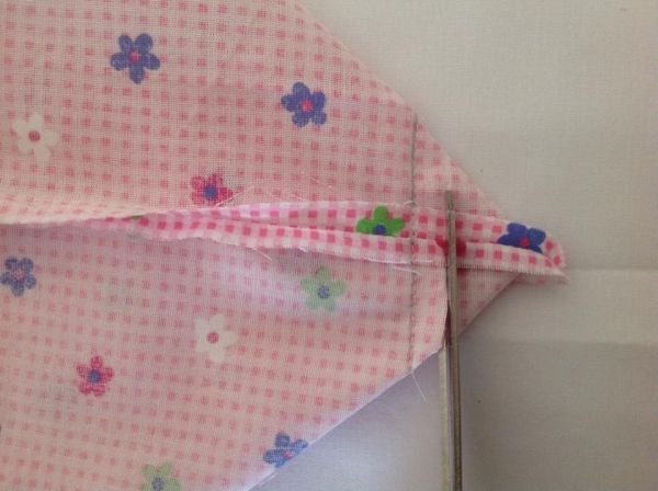 Logo após, marque os cantos do fundo do saquinho e costure, da mesma maneira que fez anteriormente.
