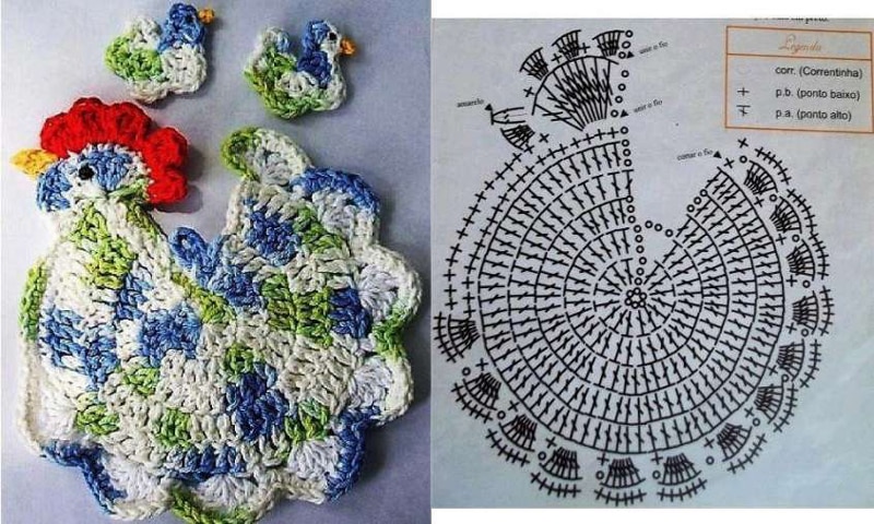 Porta Pano de Prato de Galinha de Crochê com Gráfico