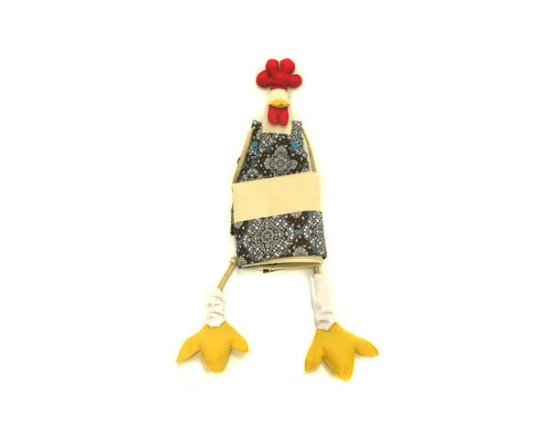 Ao final, é só fazer um ganchinho com linha nas costas do galo para ter como pendurar o seu novo porta pano de pratos.