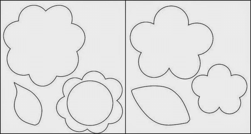 Transfira o molde, mas cortando duas partes das flores. Cole uma parte à outra, porém, antes de terminar de colar, encha cada flor com o enchimento de sua preferência, assim as flores ficam em formato 3D. Se quiser pode também frisar as partes.