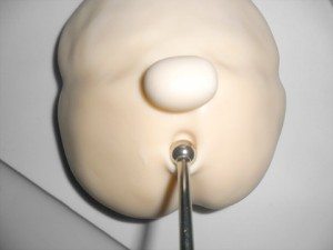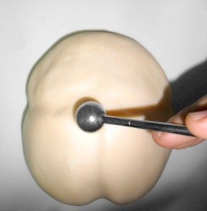 Bem no meio da parte de baixo separe as bochechas, marcando com o rolo, e alise dando acabamento.