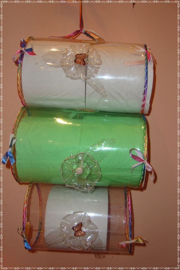 A partir destes modelos de porta papel higiênico de garrafa pet crie os seus próprios, com aquele toque especial que só você sabe dar em suas coisas.