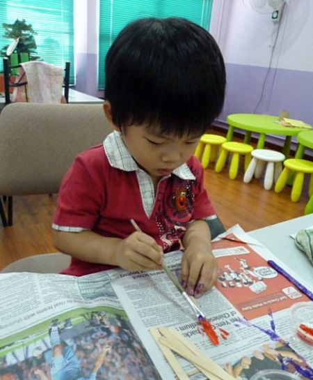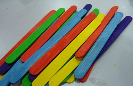 Comece pintando todos os palitos de picolé, com o auxílio do pincel e com as cores de tinta de sua preferência. Deixe secar.