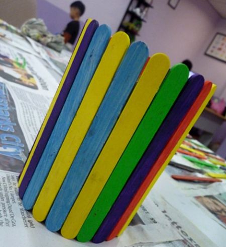 Créditos:http://www.crafty-crafted.com/recycle-craft-materials/rainbow-craft-stick-stationery-holder/?utm_source=feedburner&utm_medium=email&utm_campaign=Feed:+crafty+(Crafty+Crafted).