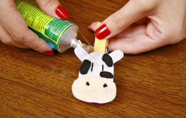 Logo após, cole a vaquinha no prendedor para roupas.