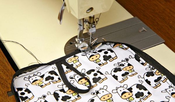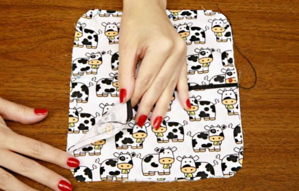 Logo após, costure com a máquina na linha divisória indo da base do porta-recados até o viés.