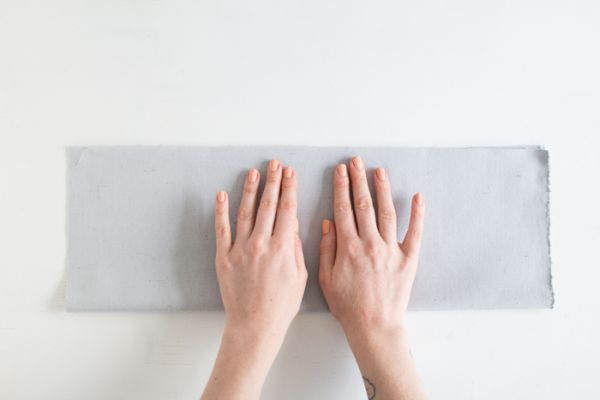 Logo após, dobre o tecido, com sobra e prenda com o auxílio de alfinetes para costura. Retire a vareta e costure.