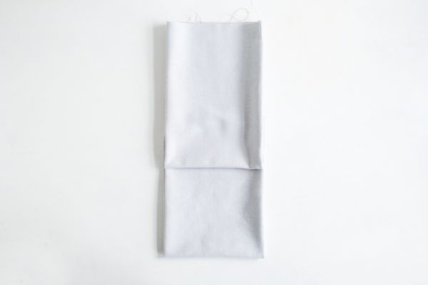 Em seguida, corte um pedaço de tecido com o tamanho de sua preferência e dobre ao meio, mas com o lado do avesso do tecido para fora. Depois costure, formando um tubo de tecido.