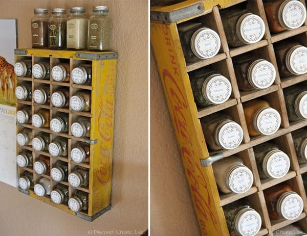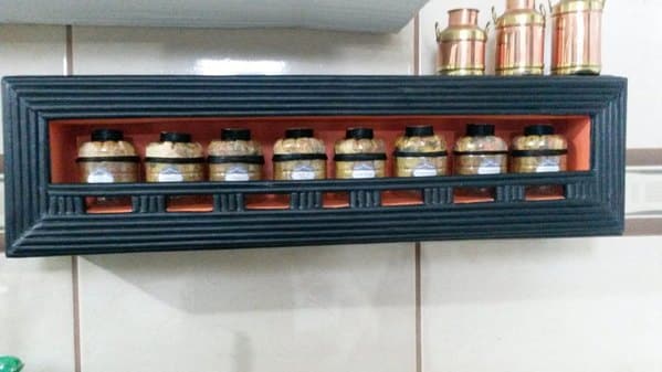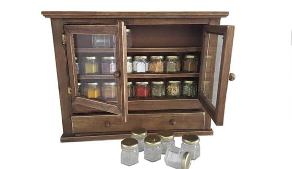Você também pode conseguir um porta-temperos caseiro pendurando na parede da cozinha algumas bandejas chiques, gavetas antigas e até caixas de madeira.
