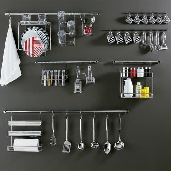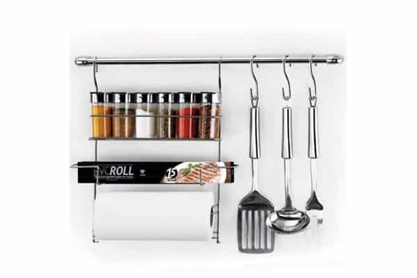 Se você quer um visual mais sofisticado para a sua cozinha, opte por porta-temperos de inox, que pode ser até um varão de inox que irá receber suportes com ganchos.