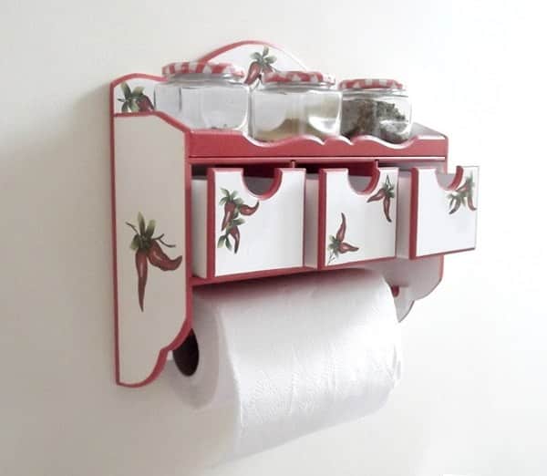 Deixe a sua rotina ainda mais prática com um porta-condimentos que já possua também em sua estrutura um suporte para papel-toalha. Vários materiais podem ser usados para confeccionar esta funcional peça para a sua cozinha.