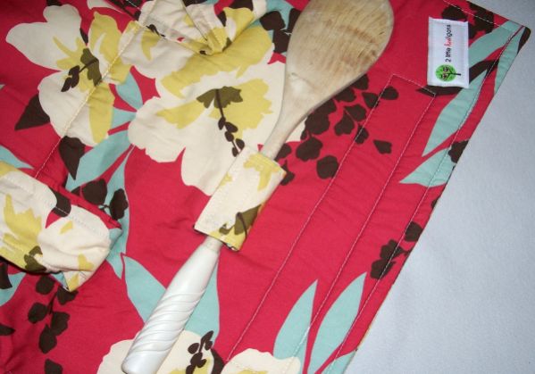 Em seguida, para finalizar a sua peça, costure um pedaço de tecido e pregue pedaços de velcro nas pontas, para você prender a colher de pau. E costure na parte de cima da peça. E está pronto!