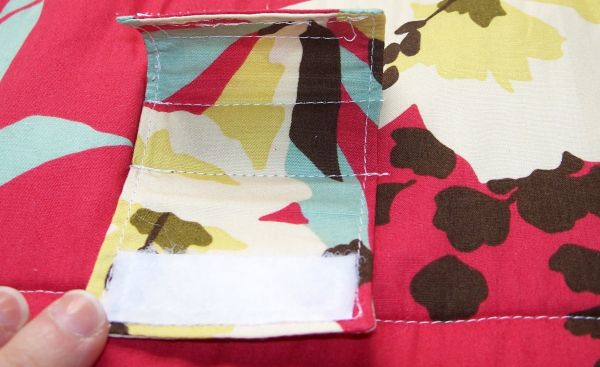 Logo após, corte pedaços de velcro e costure nas partes, mas posicione a travessa no centro e prenda as partes corretas de velcro em cada ponta.