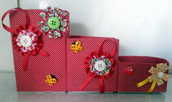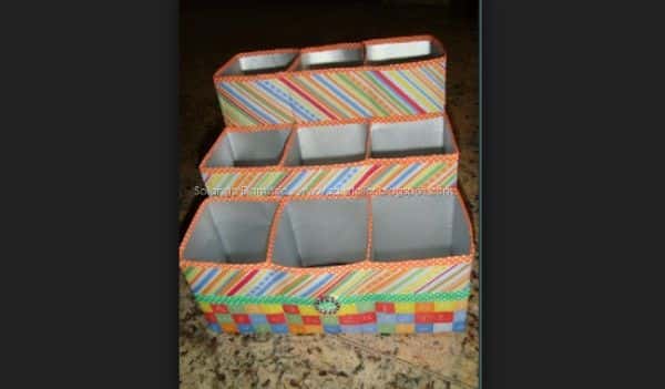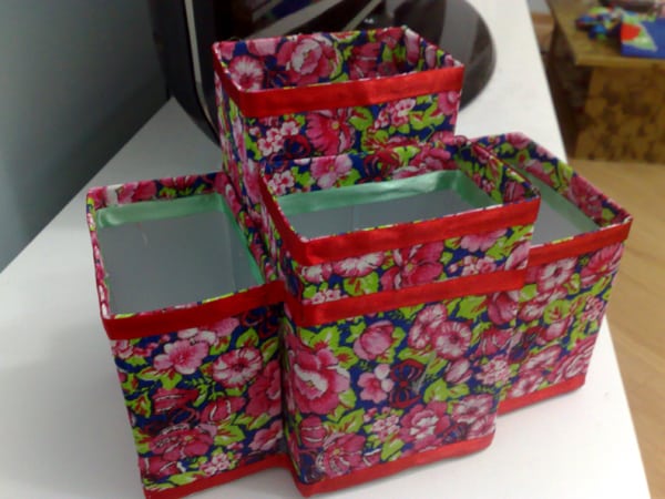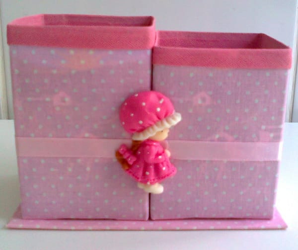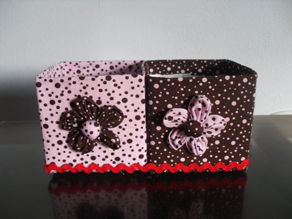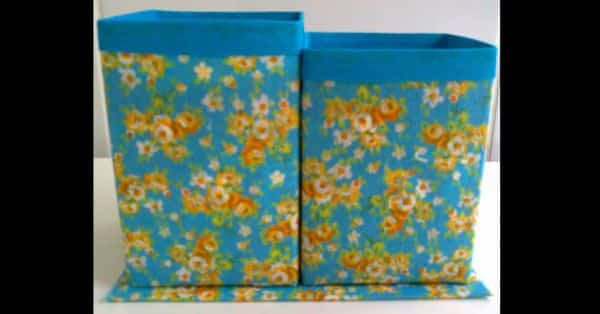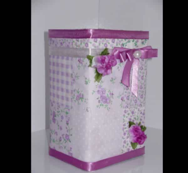 Você pode criar um lindo porta treco de caixa de leite e tecido, para diferenciar ainda mais a sua peça. E caso já possua tecido sobrando em casa, o seu artesanato ficará ainda mais barato. Fitas e outros aviamentos também podem ser usados em seu porta-trecos de caixa de leite ou seu porta-trecos de caixa de suco.