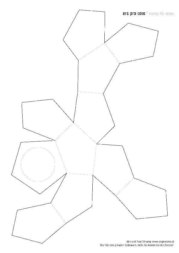 Comece transferindo o molde para o pedaço de papelão grosso. Depois recorte ao redor, com o auxílio da tesoura comum ou de um estilete, caso você prefira. E então vinque onde você deverá dobrar, com o auxílio de uma espátula ou outro objeto firme e retilíneo. E por último, ponte a sua peça, com o auxílio de pedaços de fita adesiva, para colar as partes.