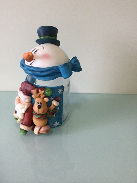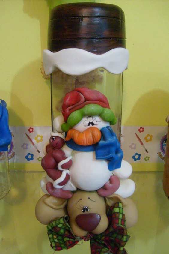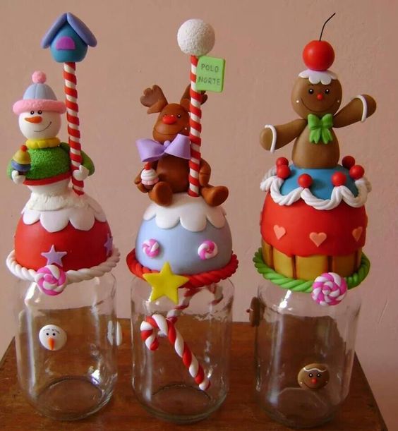 Veja o restante dos 20 potes de Natal em biscuit que trouxemos para você se inspirar e decorar a sua casa, presentear ou vender. Se você for vender os seus potes de vidro customizados com biscuit, você pode fazer joguinhos, para quer assim você consiga lucrar mais.