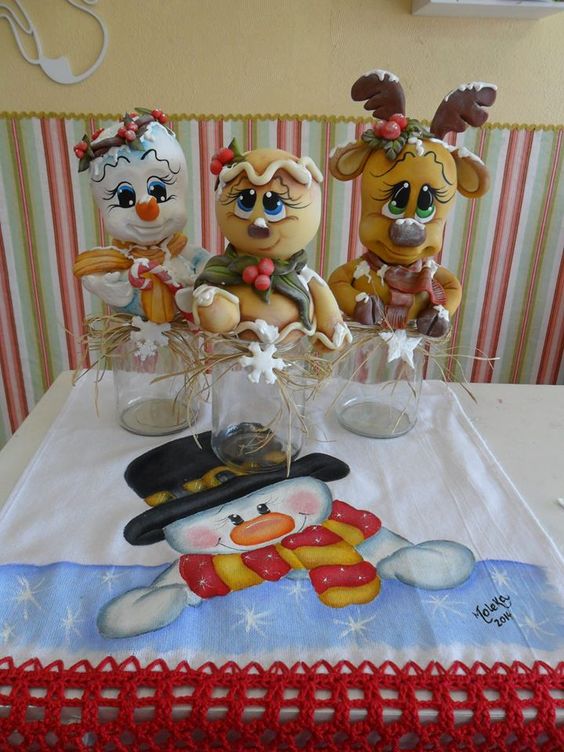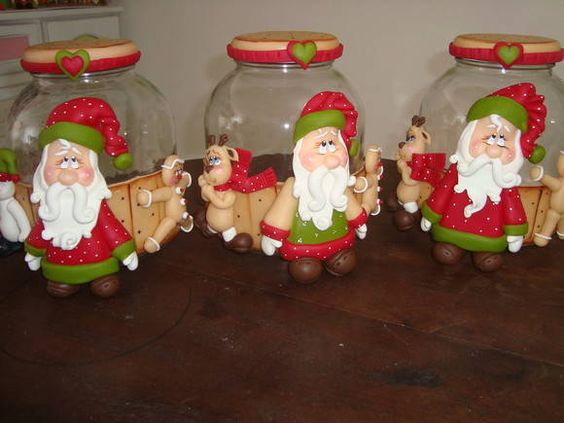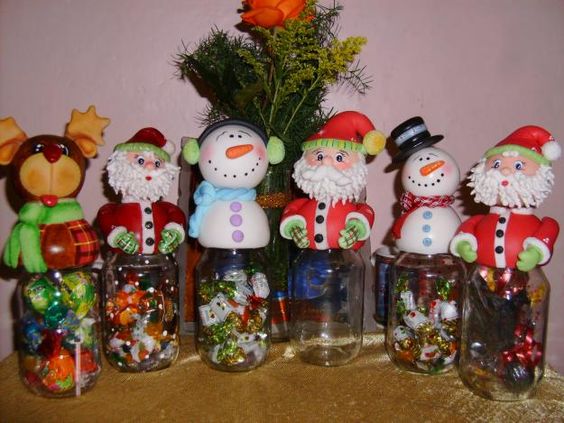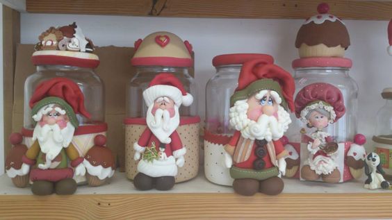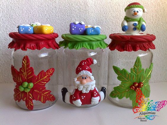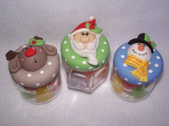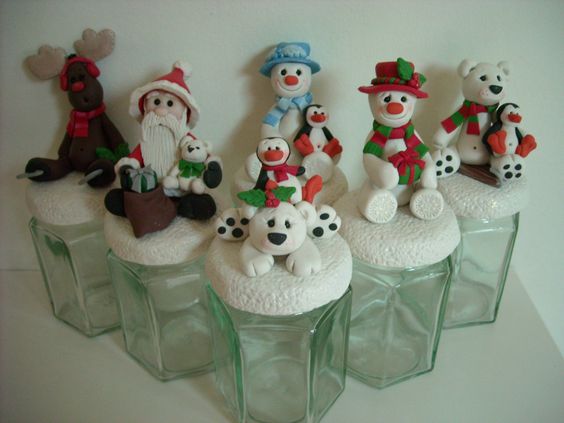 Potes de Natal em biscuit vão fazer o seu Natal mais divertido. Há diversos modelos e várias personagens que podem ser empregados nos potinhos de vidro.