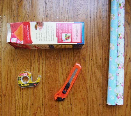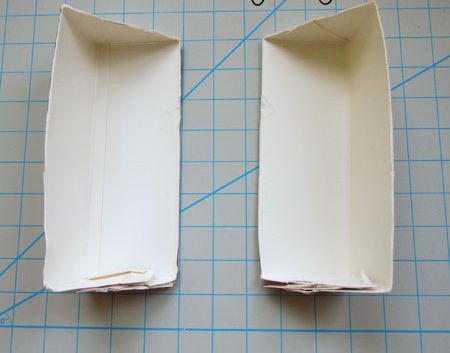 Depois risque a caixa de leite em diagonal, para criar duas partes, para criar duas prateleiras. Corte as partes. Encape cada parte da prateleira com o papel escolhido e com o auxílio da cola branca comum, da fita dupla face ou da cola em bastão, dependendo de sua preferência de cola para trabalhar com papel.