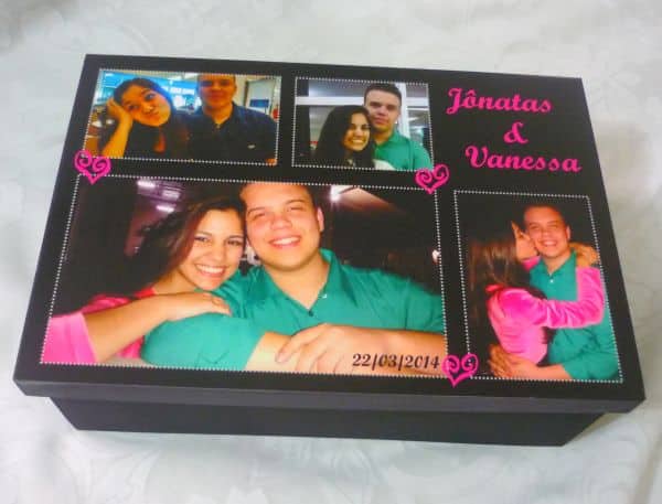Se quiser colocar as mãos na massa faça quadro de pregos, álbum de scrapbooking ou caixas decoradas com fotos de vocês.