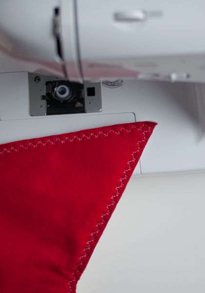 Logo após, se você estiver utilizando tecidos, você deve costurar as duas partes juntas com os lados do avesso juntos e para dentro, depois virar a peça para o lado do direito, fechar a abertura com pontos invisíveis à mão, e então fazer um ponto decorativo à máquina ao redor da peça, perto da borda, para decorar o seu protetor de panelas. Já se você estiver utilizando o feltro, basta apenas manter as duas partes juntas, com o auxílio dos alfinetes para costura, e já fazer os pontos decorativos ao redor da peça, perto da borda.