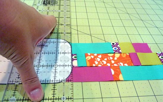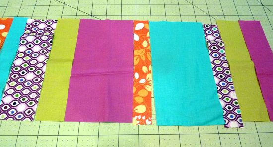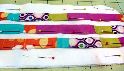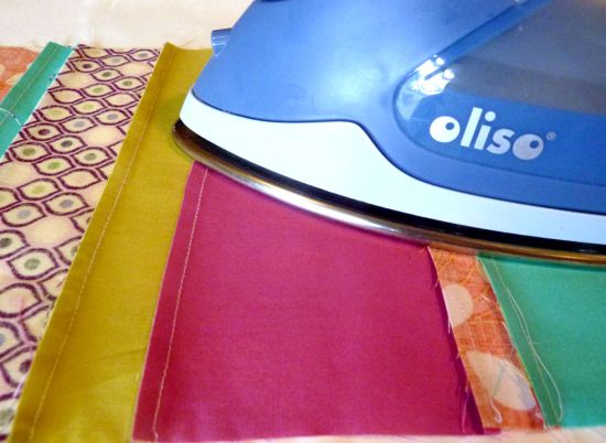 Em seguida, costure os tecidos escolhidos para as tiras e passe para acertar as costuras.
