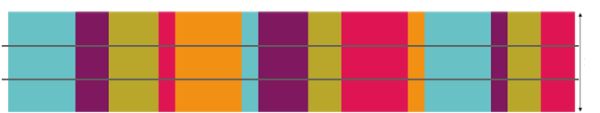 Comece seguindo o esquema da imagem a seguir, se você quiser uma peça com tirinhas com cores variadas em sua composição. Caso você queira uma peça com tiras da mesma cor, basta cortar tiras com espessura de sua preferência, e todas da mesma cor.