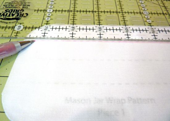 Agora, corte o tecido que será a base do seu protetor e marque onde as tirinhas devem ficar.