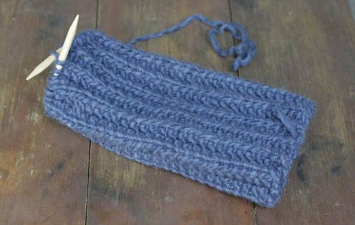 Tricote até que a peça meça aproximadamente 45 cm de comprimento com o ponto que desejar. Faça este ponto de acordo com o número de pontos que você estiver usando, ou seja, de maior ou menor comprimento.