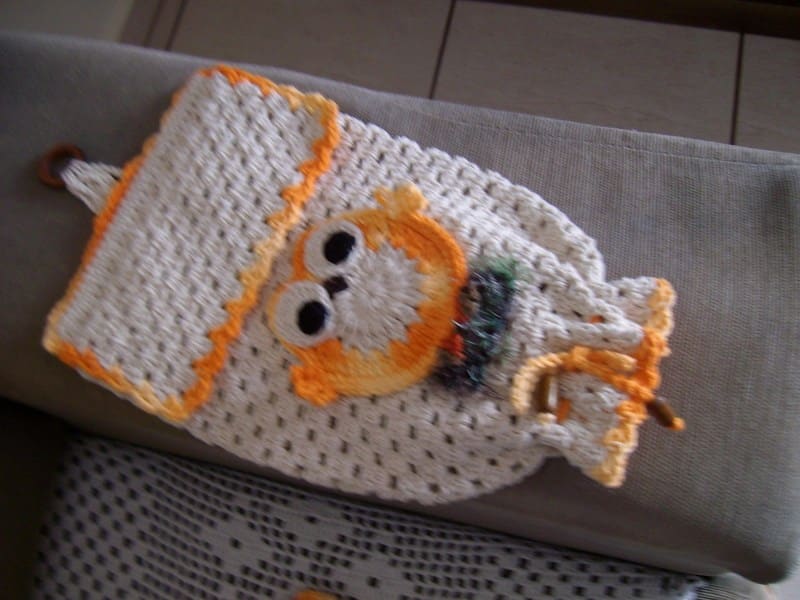 Ele pode ser tecido com qualquer cor, abre também muitas possibilidades e garante um resultado no mínimo peculiar, porque a parte da boca acaba servindo como a entrada (abertura) para as sacolas do puxa saco.