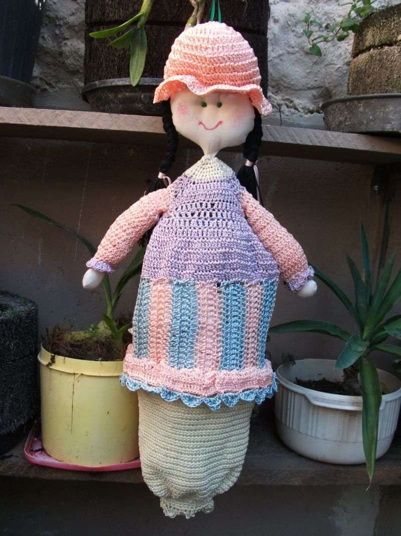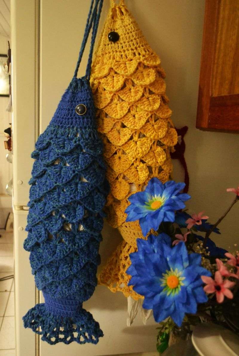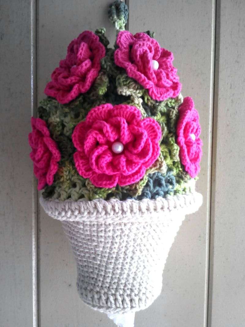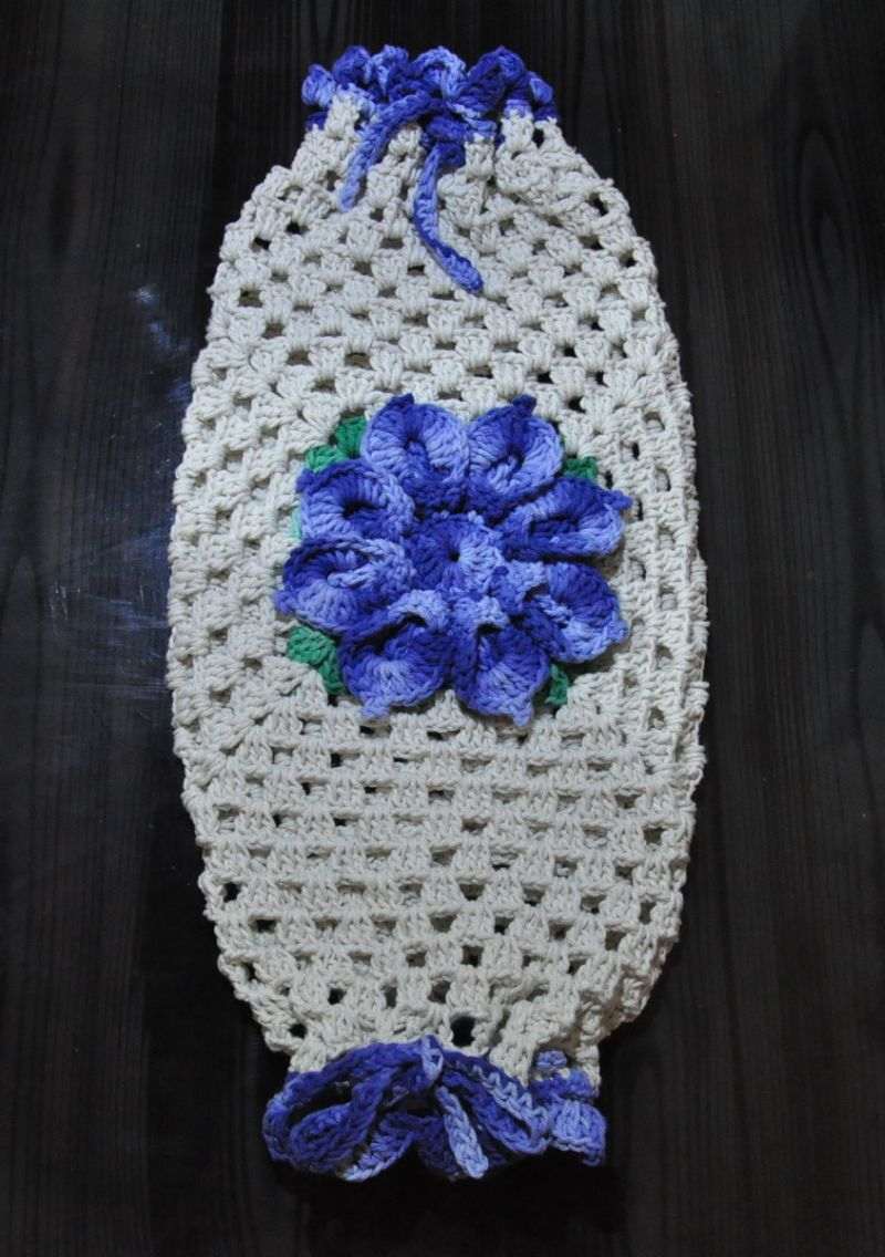 O puxa saco de crochê é uma peça fantástica que organiza e guarda os sacos da sua casa.