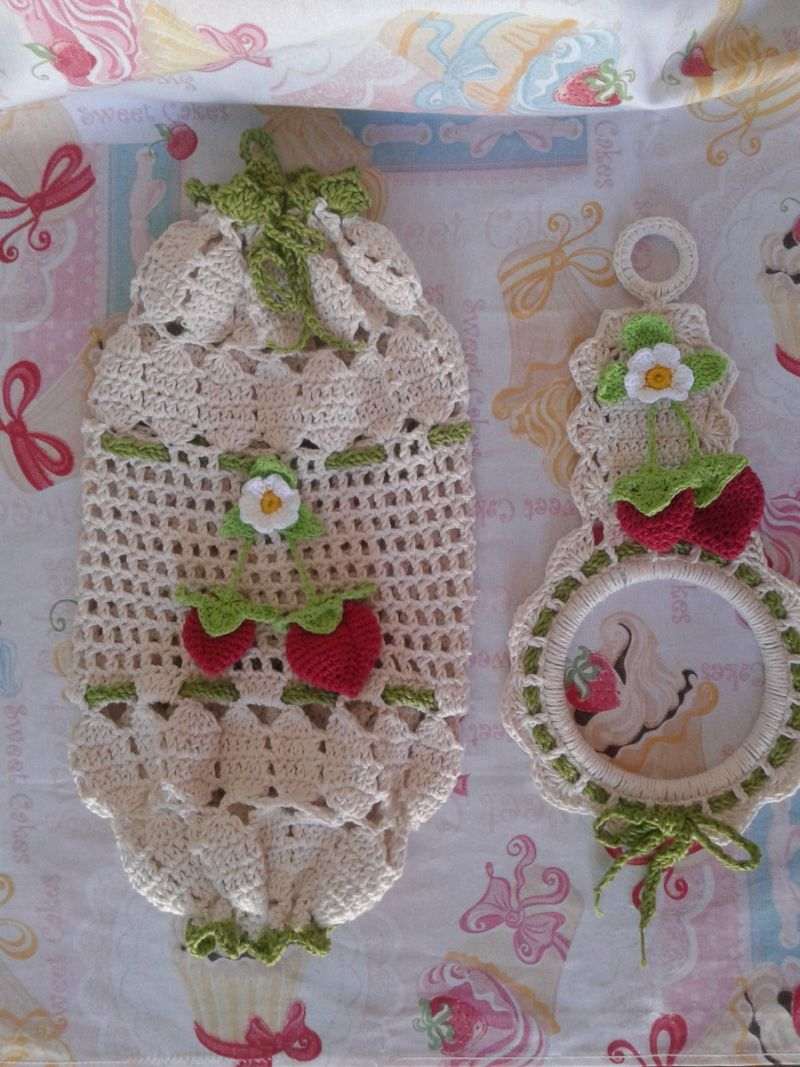 A peça também usa duas cores de linhas, pelo menos: o vermelho e o verde (que além de servir para o acabamento superior, é a cor que representa as folhinhas da fruta).
