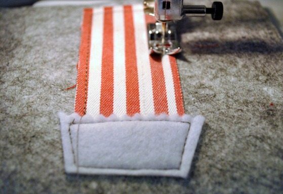 Logo após, costure a chaminé e uma laçada de fita, para pendurar.