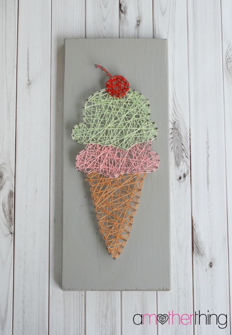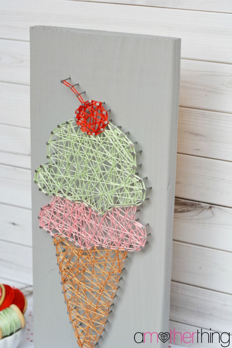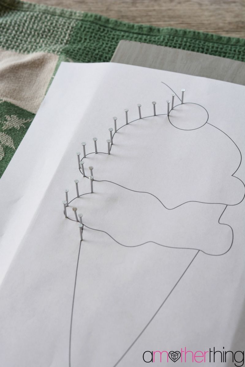 Créditos:http://www.amotherthing.com/2015/07/diy-string-art-ice-cream-cone-with-template/