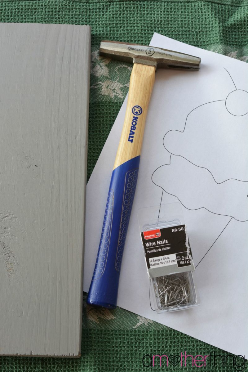 Depois que a tinta ou o verniz estiver seco, fixe a impressão com o desenho que você quiser na placa de madeira, com o auxílio de pedaços de fita adesiva. Então, com o auxílio do martelo, comece a fixar os pregos pequenos ao redor do contorno do desenho escolhido.
