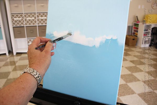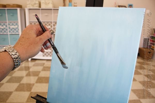 Em seguida, comece a pintar a primeira tela, com a cor de sua preferência e também com a cor branca, para criar um efeito degradê.