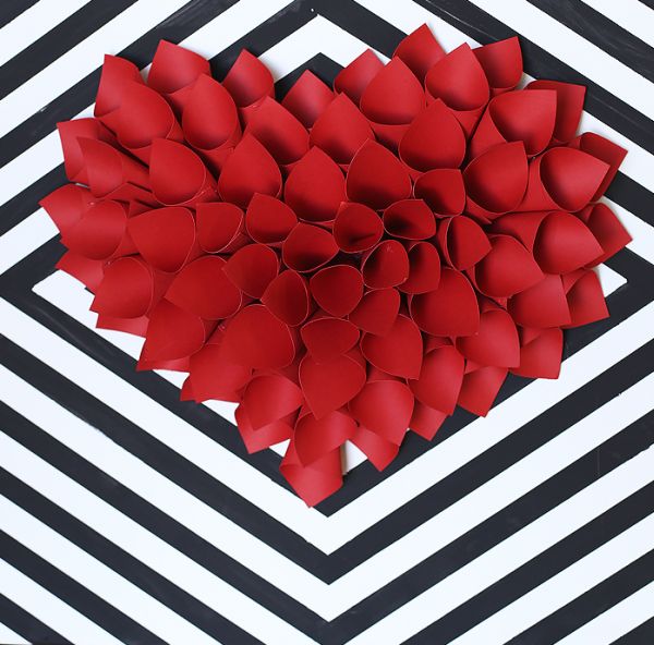 Faça um quadro de coração 3D com cones de papel, para repaginar o visual de sua casa. Cor, tamanho e cômodo em que você irá posicioná-lo ficam por sua conta.