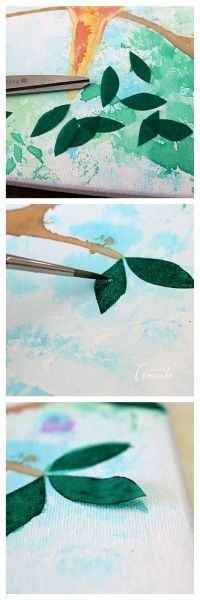 Logo após, pinte os pássaros e os galhos com o auxílio das tintas para tela.