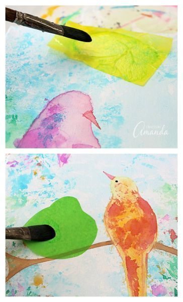 Créditos:http://craftsbyamanda.com/bleeding-tissue-paper-birds-canvas/