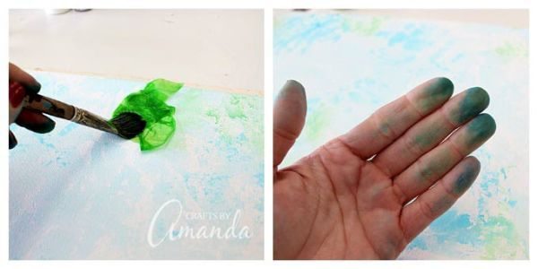 Logo após, siga pintando as partes da tela com os papéis de seda.