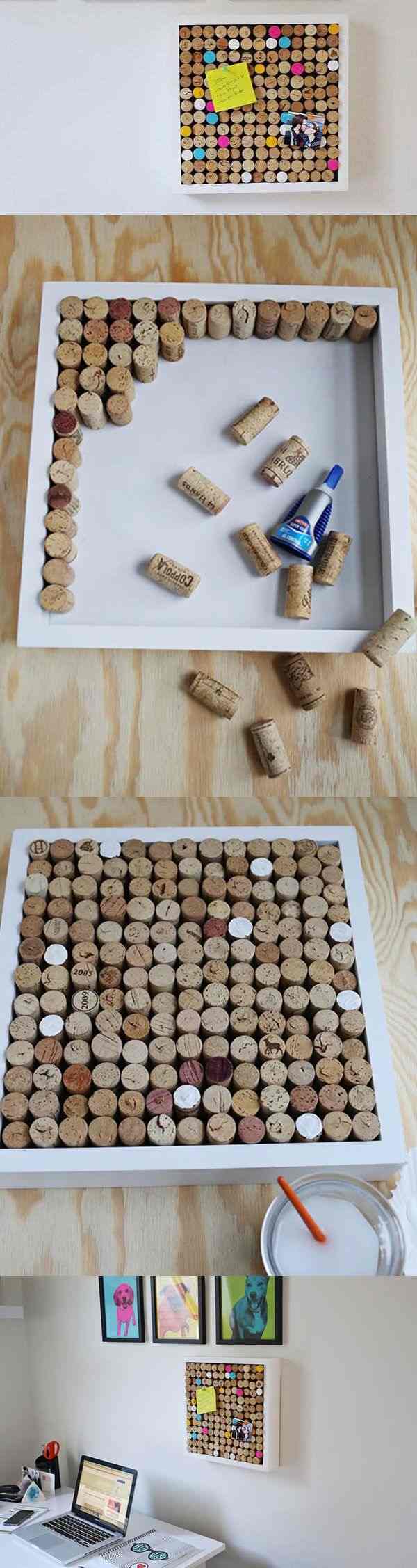 Se você quer guardar as suas rolhas de forma funcional, faça um quadro de rolhas que é também um porta-recados.