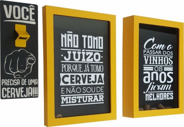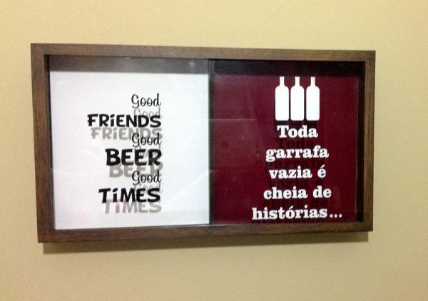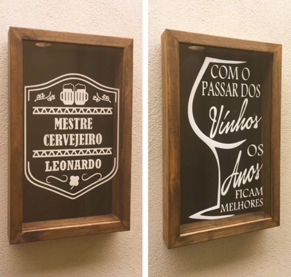 O quadro porta-rolhas ou tampinhas é um item que não precisa estar localizado na cozinha, churrasqueira ou área gourmet, ele pode estar posicionado tranquilamente na sala de estar, na parede do seu bar, na sacada ou no local onde você recebe as suas visitas para beber, para não precisar ter trabalho nem para andar até o ponto em que o quadro está pendurado, basta jogar a tampinha ou rolha na peça onde você está. E há até opções que acomodam tampinhas e rolha em uma única peça, com uma divisão no meio.
