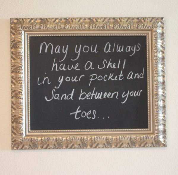 Outra opção para utilizar uma moldura antiga de um quadro ou porta-retrato é trocar o fundo original de sua peça por uma lousa ou um pedaço de madeira pintado com tinta lousa e, com o auxílio de um pincel comum. E este mural de recados estilizado por ficar posicionado sobre um móvel, caso você utilize um porta-retrato ou pode ser pendurado na parede, caso você utilize um quadro comum ou fixe um gancho para pendurar na parede na parte detrás do seu porta-retrato.