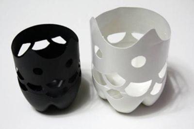 Logo após a tinta estar totalmente seca, prenda o papel carbono e o molde em sua peça e transfira o molde para a sua garrafa plástica. Ao final, comece a recortar as partes que você quiser, criando partes vazadas em sua luminária estilizada.