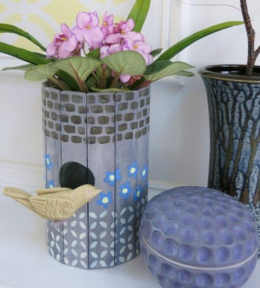 Créditos:http://hubpages.com/art/DIY-Craft-Tutorial-Recycle-a-Birdhouse-into-a-Planter-or-Flower-Vase
