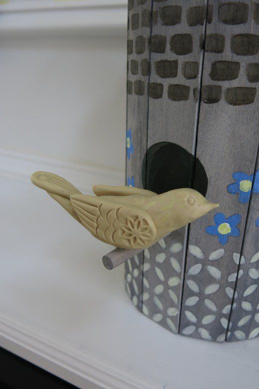 Para finalizar a sua peça, cole o passarinho na varetinha. E está pronto!